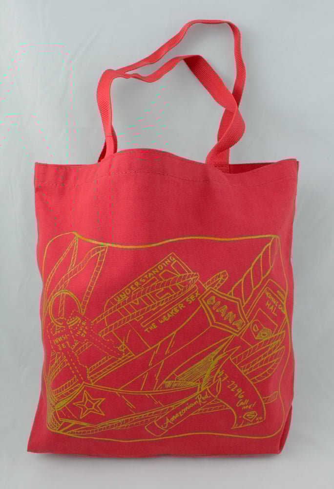 Pretend to be your fave heroine with this fun tote bag, perfect for conventions, grocery shopping, and saving the world.